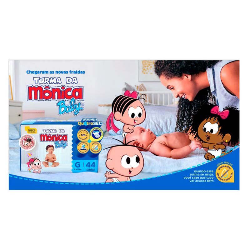 A Fralda Descartável Turma Da Mônica uniu proteção e conforto em uma nova opção de fralda. A Nova fralda Turma da Mônica Baby possui a nova Tecnologia QuatroSec para que ele fique calmo, tranquilo e seguro durante o dia e a noite toda. Conta com um exclusivo sistema de canais que distribui mais rápido o xixi, barreiras anti-vazamento e uma fina camada extra que ajuda a manter o bebê sequinho por até 12 horas. Além disso possui cintura elástica que proporciona um ajuste perfeito no corpo.