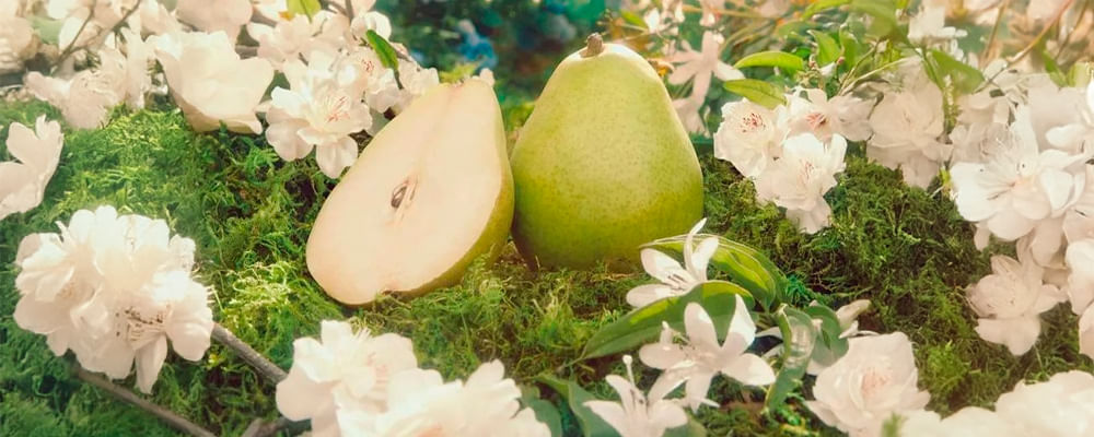 - Topo: Frutas vermelhas e pêra suculenta — uma abertura fresca, brilhante e convidativa.