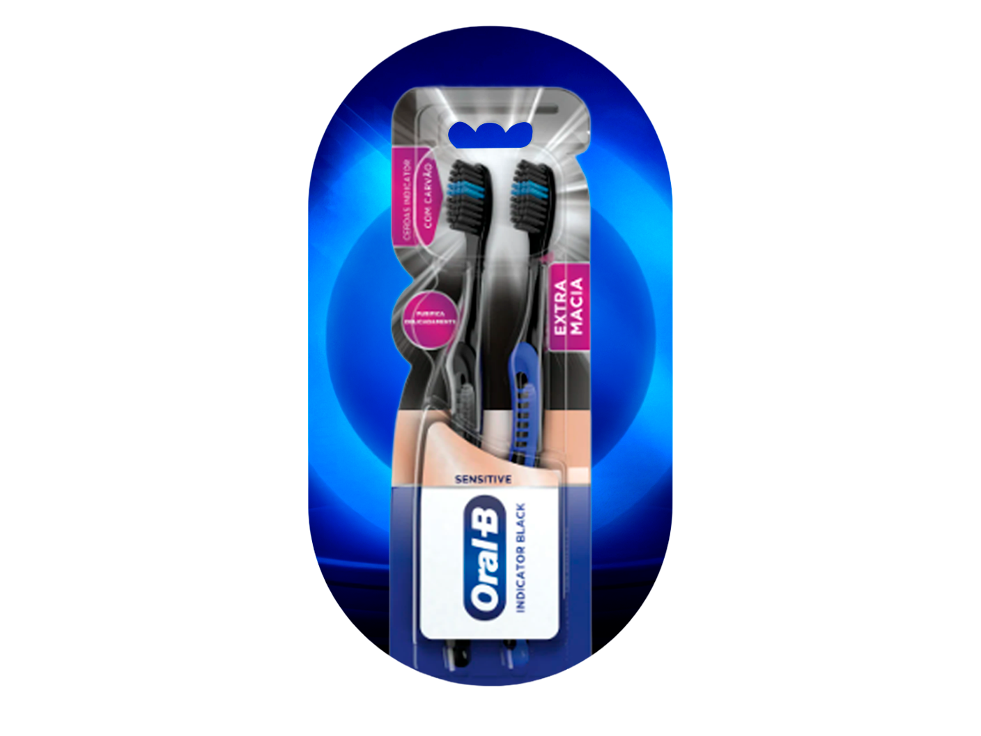 A Escova Indicator Black Carvão combina cerdas com carvão ativado para limpeza profunda, remoção de manchas e indicador de troca para manter seu sorriso saudável.
